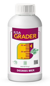 ILSAGRADER, based on polysaccharides, potassium thiosulphate, betaines and alginates, is designed for the ripeningstages of fruit productions, for it increases fruit consistency, the accumulation of acids and their transformationinto sugars, while also improving the balance between flavours and savours without affecting the final pH.