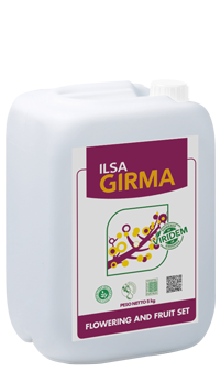 ILSAGIRMA is based on protein nitrogen and other plant extracts, each with specific molecules positively stimulatingthe flowering/fruit set stages and proper ripening of tree crops and fruit vegetable crops. The presence of yeast extracts strongly stimulates flowering, backed by the action of fucoidans, laminarins andspecific amino acids such as proline, glutamic acid and glycine for the vegetative and flowering/fruit set stages. ILSAGIRMA is a great support to lay the foundations for an excellent final production.