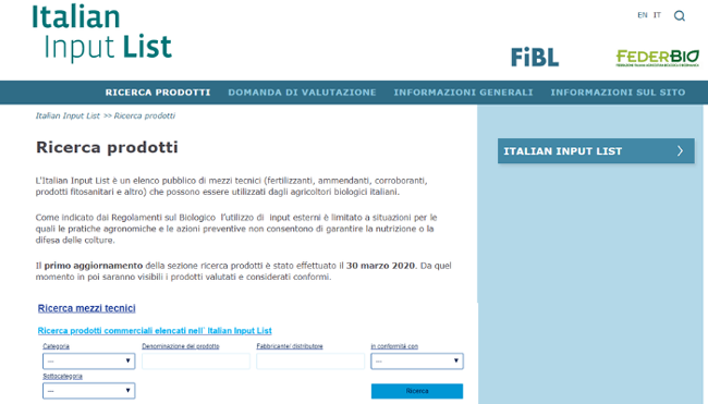 L’Italian Input List e’ un registro pubblico a disposizione di agricoltori che operano in biologico, enti di certificazione, autorità e produttori di mezzi tecnici per l’agricoltura. Gli agricoltori certificati per il bio, possono verificare nella lista quali i mezzi tecnici che sono stati valutati positivamente rispetto alle normative europee e nazionali in vigore, ma anche rispetto a criteri aggiuntivi che guardano alle peculiarità e alle esigenze dell’agricoltura biologica italiana.