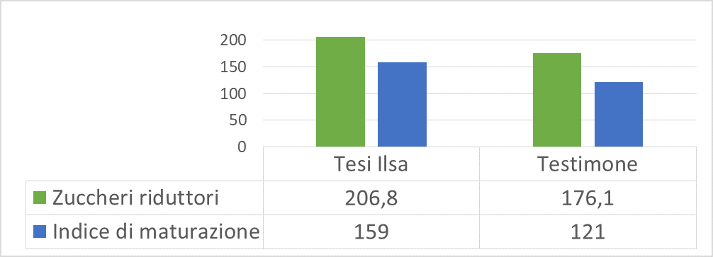 Grafico 1: analisi dei mosti effettuate alla raccolta, è possibile osservare come le uve della tesi ILSA al momento della raccolta