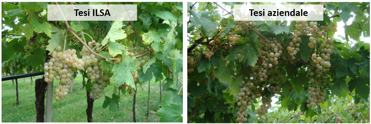 Foto1: è possibile osservare come nella tesi ILSA ci sia stata una miglior allegagione e gli acini si presentino uniformi