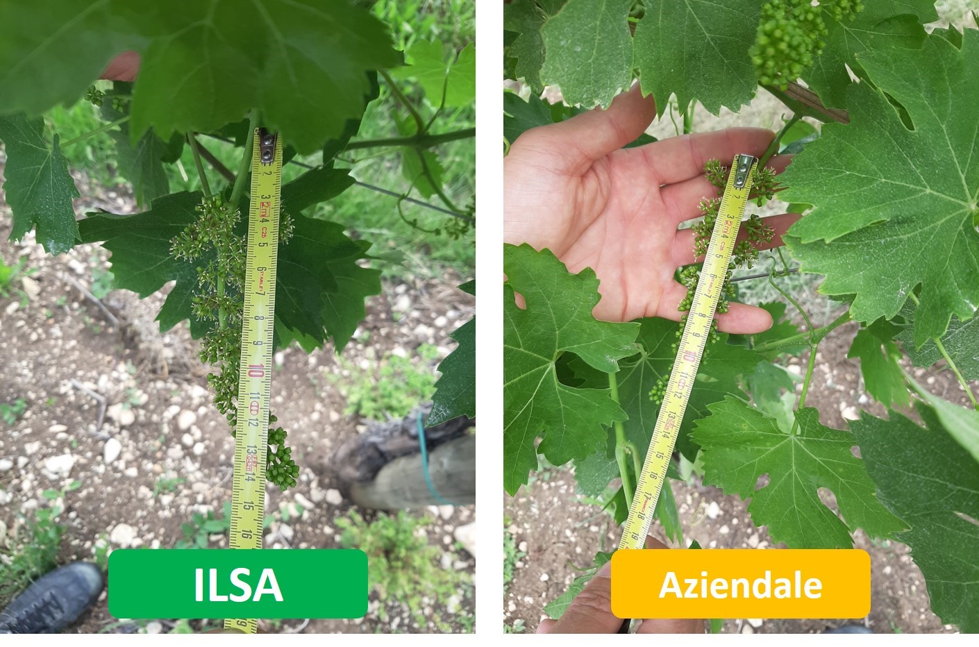 Foto 3: Maggior sviluppo in lunghezza del rachide del grappolo osservato nella parte del campo demo dove sono stati applicati i prodotti ILSA.