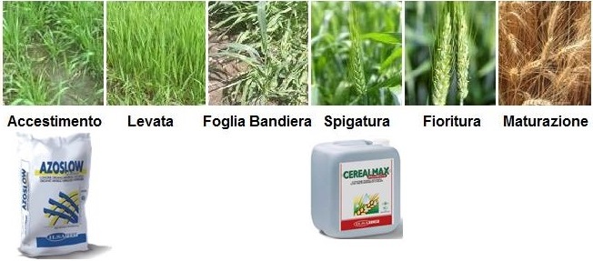 Il terzo picco di assorbimento azotato del frumento, che avviene in fase di spigatura, può essere soddisfatto anch’esso in modo più efficiente, con Cerealmax Plus Micro, concime fogliare a base di GELAMIN® (gelatina idrolizzata fluida per uso agricolo), urea tecnica e microelementi. Anche in questo caso il connubio è perfetto. GELAMIN®, matrice fluida a base di amminoacidi, riesce a tenere insieme l’azoto organico e ureico ed i microelementi fondamentali per il frumento (Zn, Fe, Mn), facilitandone l’assorbimento a livello fogliare. Il processo di idrolisi enzimatica (e non chimica) da cui si ottiene, permette di mantenere inalterate le caratteristiche degli amminoacidi, che quindi rimangono nella loro forma attiva e riescono anche a stimolare positivamente il metabolismo delle piante. Ciò consente un migliore riempimento della granella, con conseguente aumento del peso specifico e del contenuto proteico, oltre ad un generale beneficio vegetativo che si traduce in uno stay green più prolungato. E questo senza incidere ulteriormente sui costi, in quanto la particolare composizione di Cerealmax Plus Micro lo rende miscibile con qualsiasi formulato commerciale, per cui può essere aggiunto in miscela ai normali trattamenti fungicidi che si effettuano in questo periodo (ad esempio contro la fusariosi della spiga). Azoslow e Cerealmax Plus Micro garantiscono la massima efficienza nutrizionale per il frumento. Con due soli interventi e la conseguente riduzione dei costi, permettono di ottenere sempre un’alta resa e qualità della granella, a prescindere dall’andamento climatico.