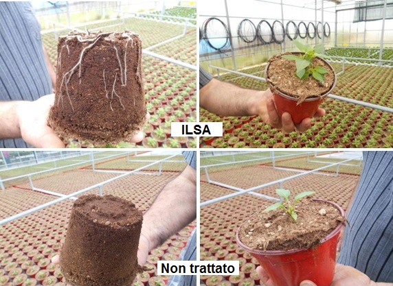 Solo nell’ultimo anno, le diverse esperienze di utilizzo di ILSASTIM+, in vivaio e in serra, somministrato in svariate maniere, dal bagno con i plateau prima della vendita, alla messa a dimora in vaso, in manichetta aggiunto alla soluzione circolante, attraverso il sistema fog-system, attestano come abbia favorito un maggiore sviluppo radicale in breve tempo, portando ad un anticipo medio di circa una settimana nella produzione di piantine pronte per la vendita.
