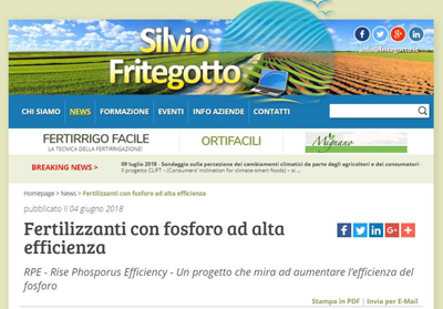 Il sito di informazione agronomica di Silvio Fritegotto pubblica la notizia sul progetto RPE - Rise Phosphorus Efficiency - che mira ad aumentare l'efficienza del fosforo, ponendo attenzione sul suo approvigionamento da parte dell'Europa non ancora indipendente. In fututo, la disponibilità di elementi nutritivi per le piante, fosforo prima di tutto, sarà critica.