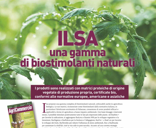 Agricommercio dedica uno spazio ai biostimolanti ILSA utilizzabili anche in agricoltura biologica. Le sue matrici, riconosciute come biostimolanti dalla normativa italiana, in particolare l'idrolizzato enzimatico di Fabaceae, consentono di avere prodotti efficaci e applicabili a forme di agricoltura a basso impatto ambientale...