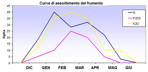 Il frumento deve avere, nelle prime fasi, azoto e fosforo disponibili il più a lungo possibile. La pratica tradizionale prevede l’applicazione di concimi minerali in pre-semina ma bisogna considerare le reali esigenze di azoto nelle prime fasi successive alla semina, che sono basse.