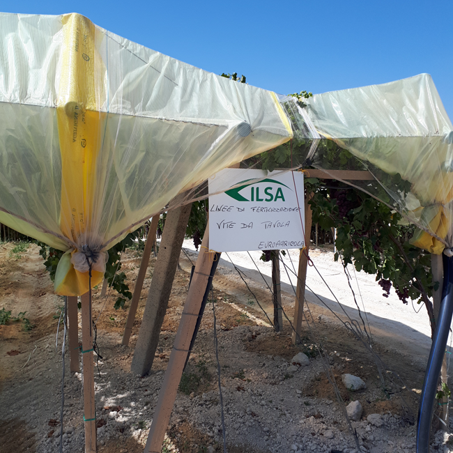 Su vite da tavola varietà Red Globe, sono stati constatati il carico produttivo medio di 35-40 kg/pianta, il calibro medio degli acini di 22 mm e, soprattutto, la colorazione raggiunta in maniera uniforme su tutto il tendone, già a metà settembre. Quest’ultimo aspetto ha suscitato particolare entusiasmo nei partecipanti, che hanno così accertato gli effetti positivi dei concimi proteici e biostimolanti vegetali di produzione esclusiva ILSA.