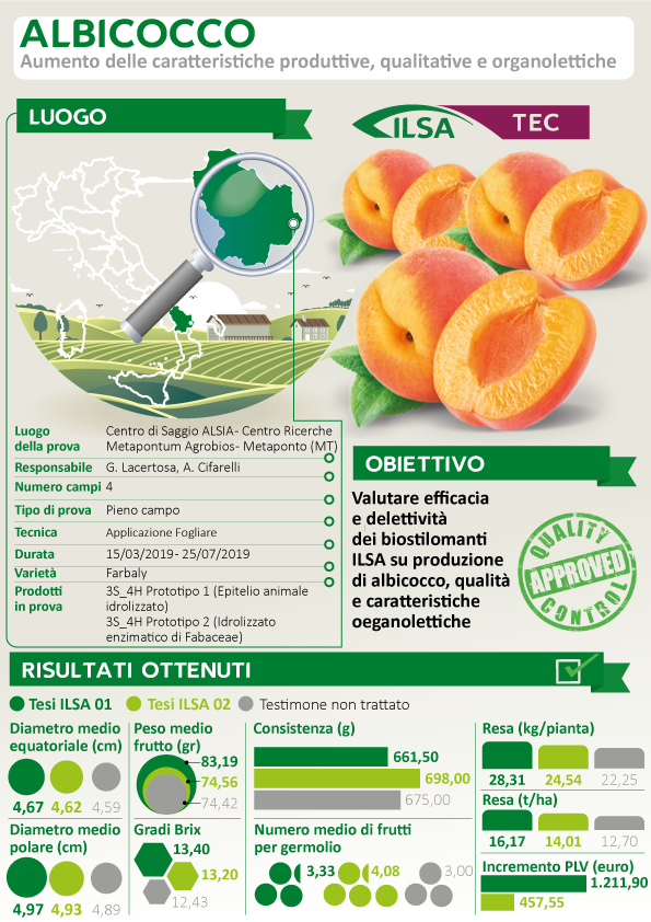 Valutare efficacia e selettività dei biostimolanti ILSA su prodzione di albicocco, qualità e caratteristiche organolettiche.