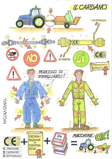 - marchio CE, dichiarazione di conformità e manuale di uso e manutenzione, non solo per l'albero cardanico ma anche per il trattore e le attrezzature di collegamento.